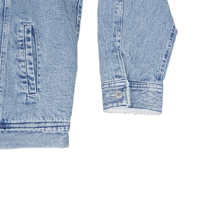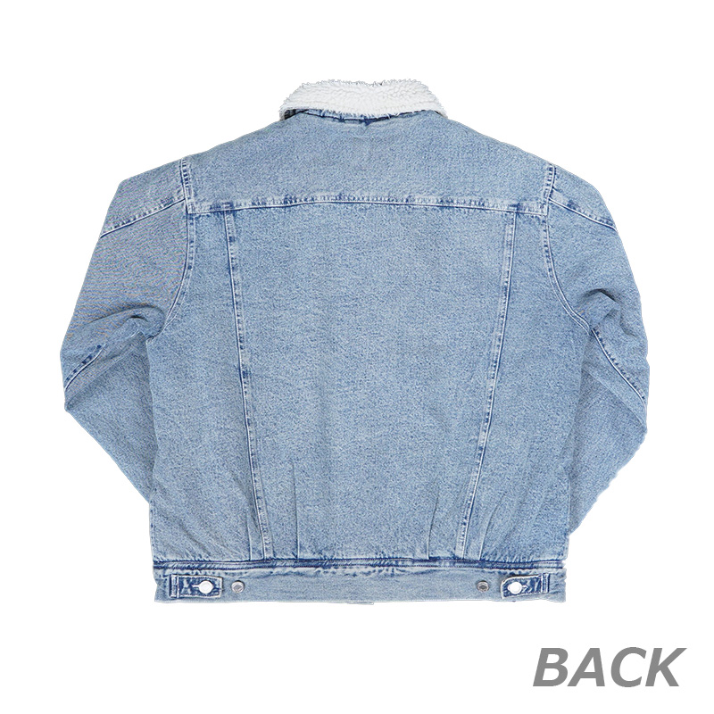 素材は表地 綿100% ボア・袖裏 ポリエステル100% ボア付きで暖かいヴィンテージ風デニムジャケットです。 色落ち感のあるデニムボディに、裏地ボアでしっかり防寒。 身頃・襟・袖口にボアをたっぷり使用し防寒仕様。 袖部分はポリエステル素材を使用し、着ぶくれせず動きやすいのもポイントです。 性別問わずご着用いただけます。