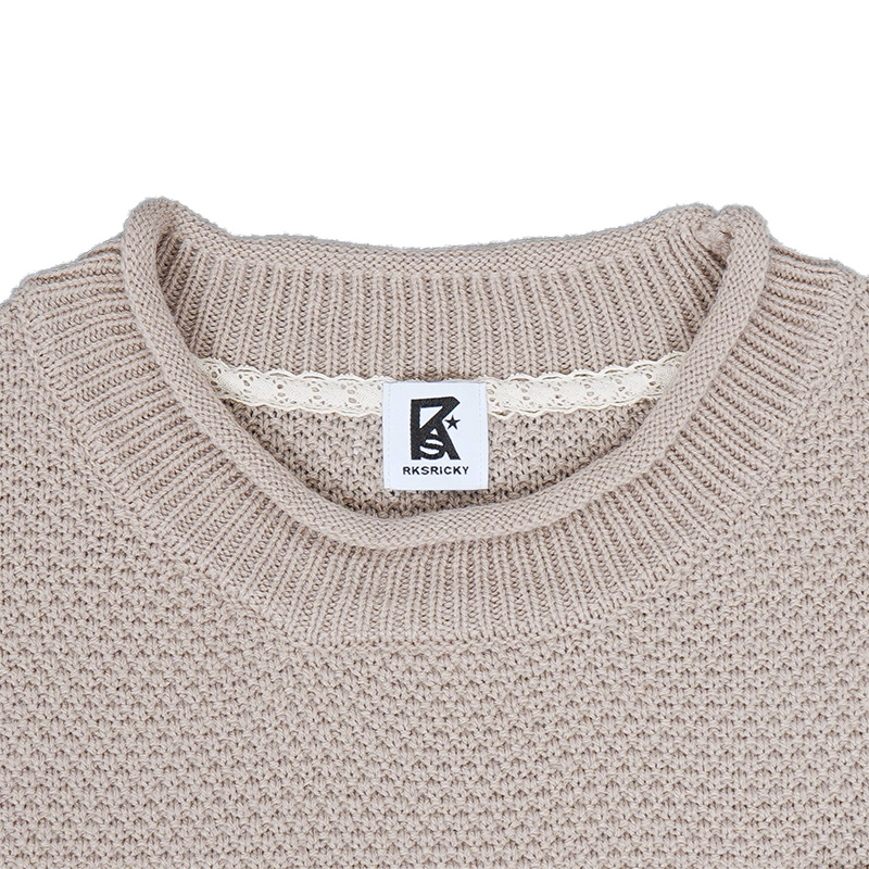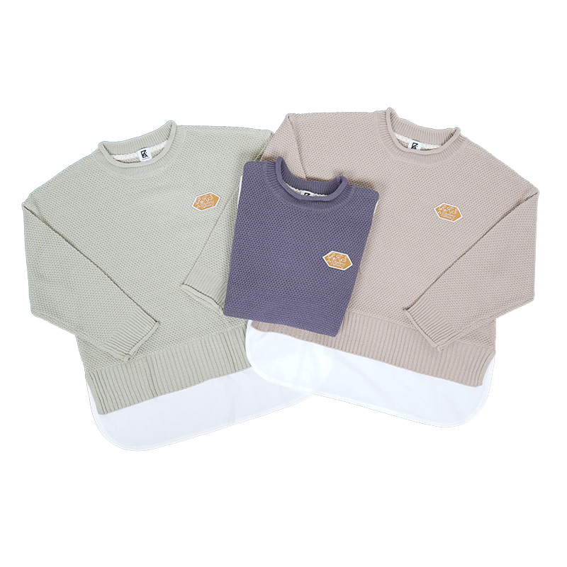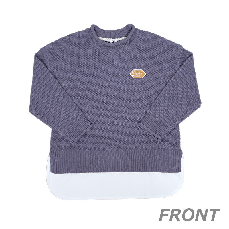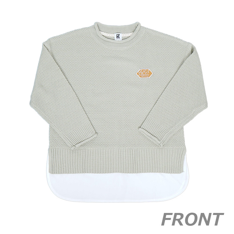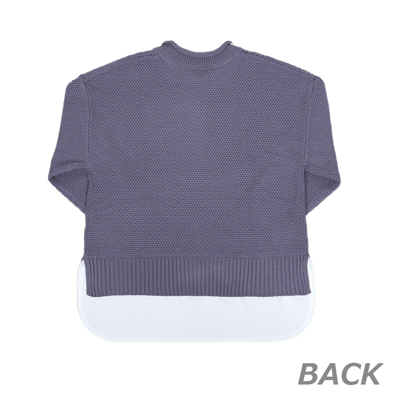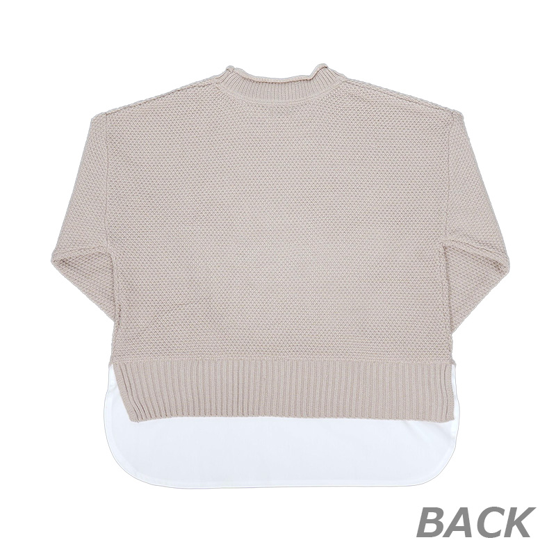 レイヤード風デザインが映える女性向け鹿の子編みセーター。