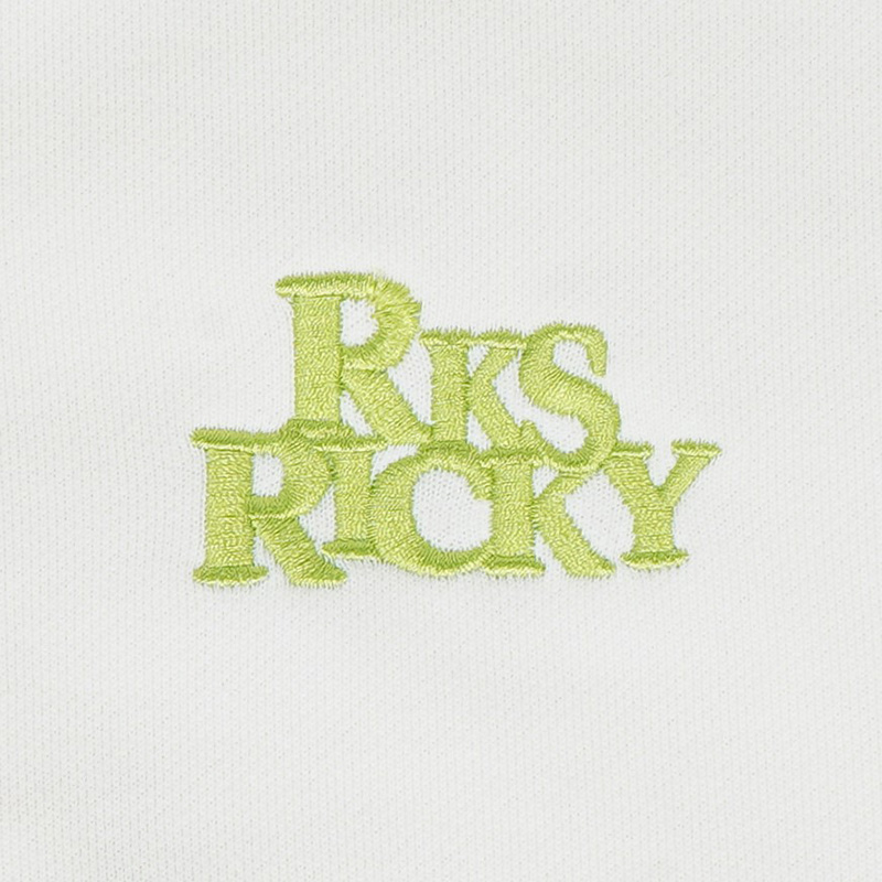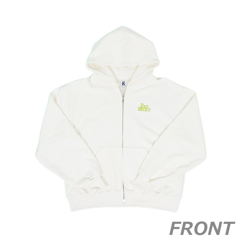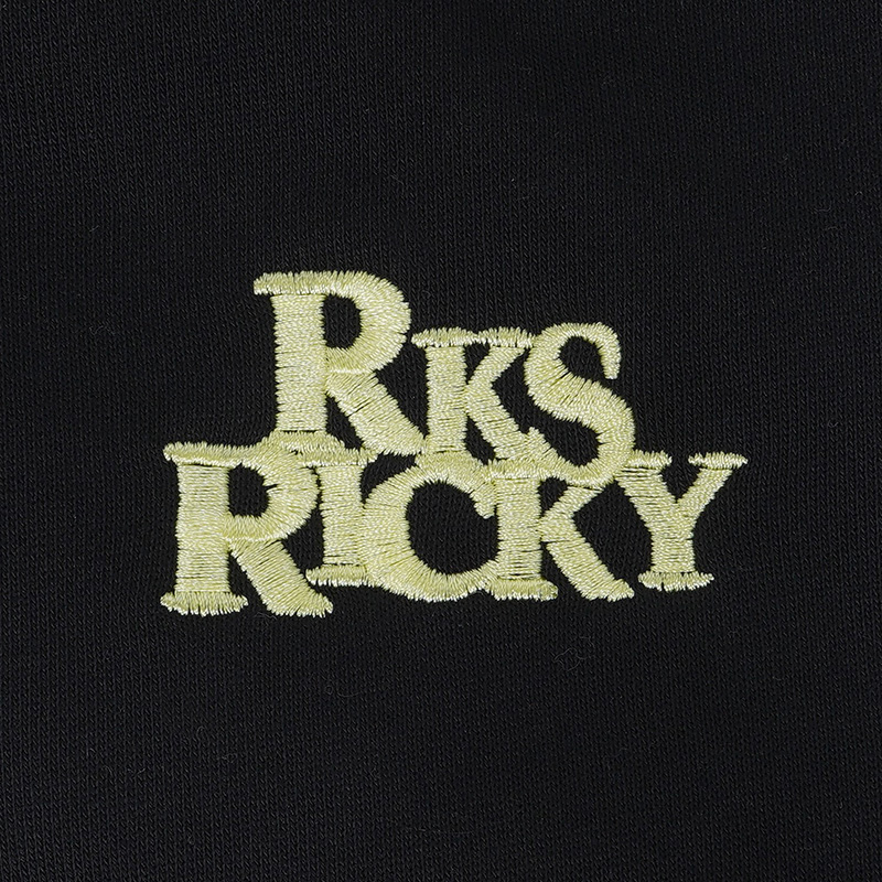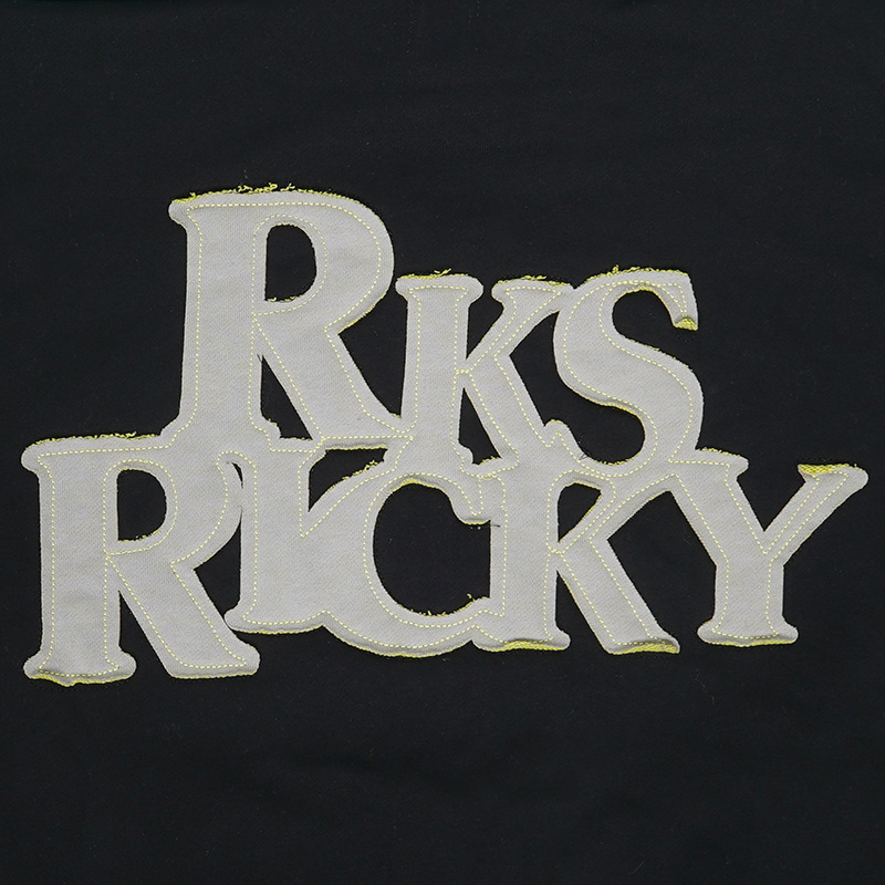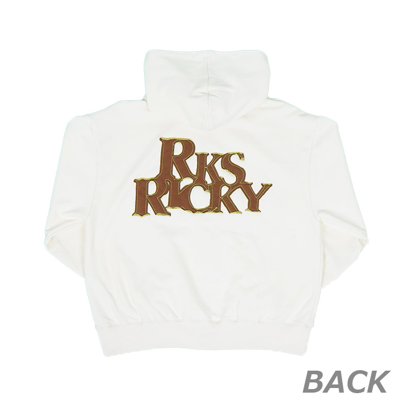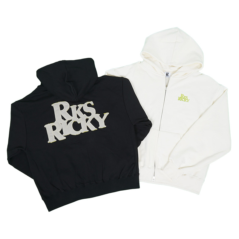 フロントはワンポイントロゴ刺繍、背中には大胆な RKS RICKYロゴがあしらわれた、シンプルなのに存在感のあるジップパーカーです。