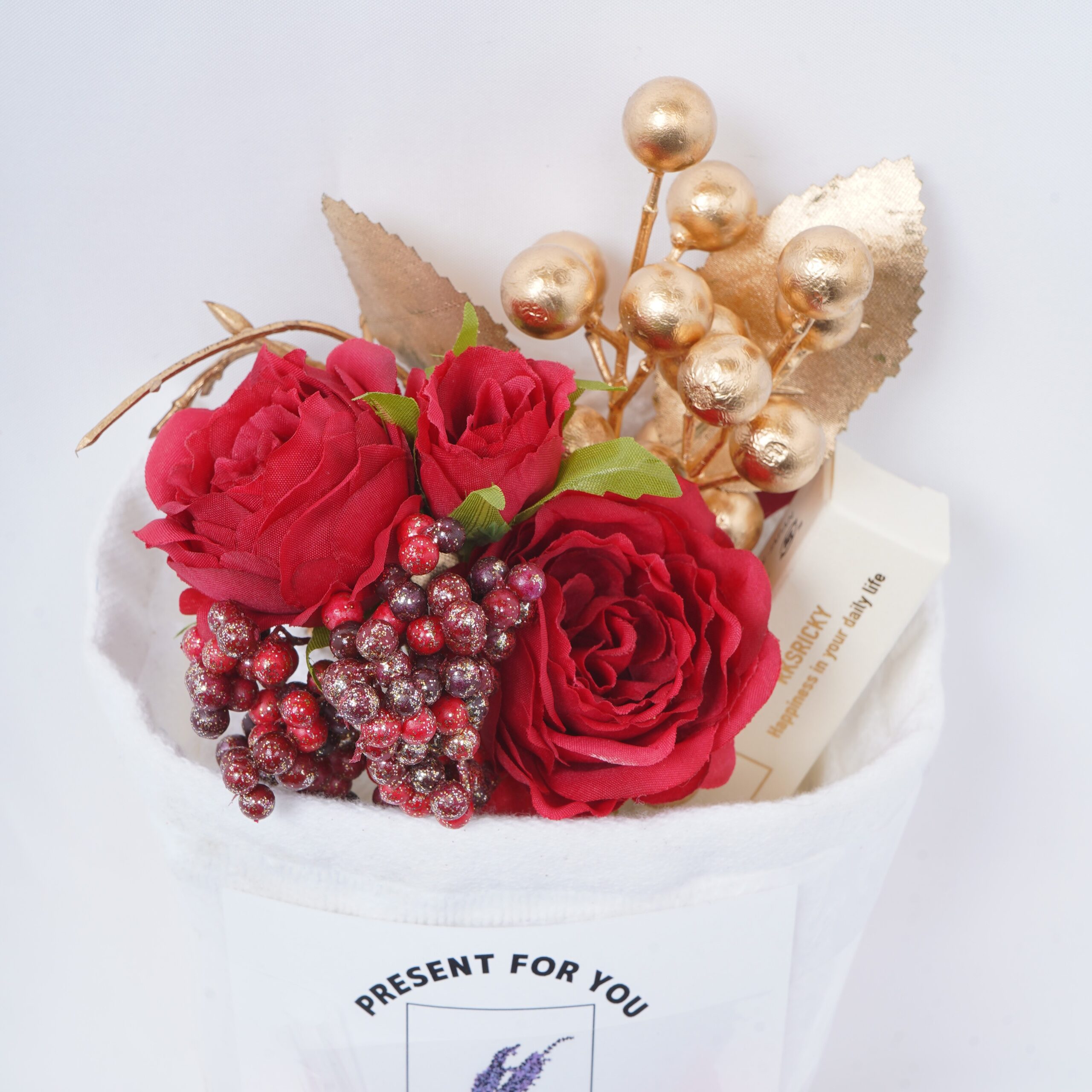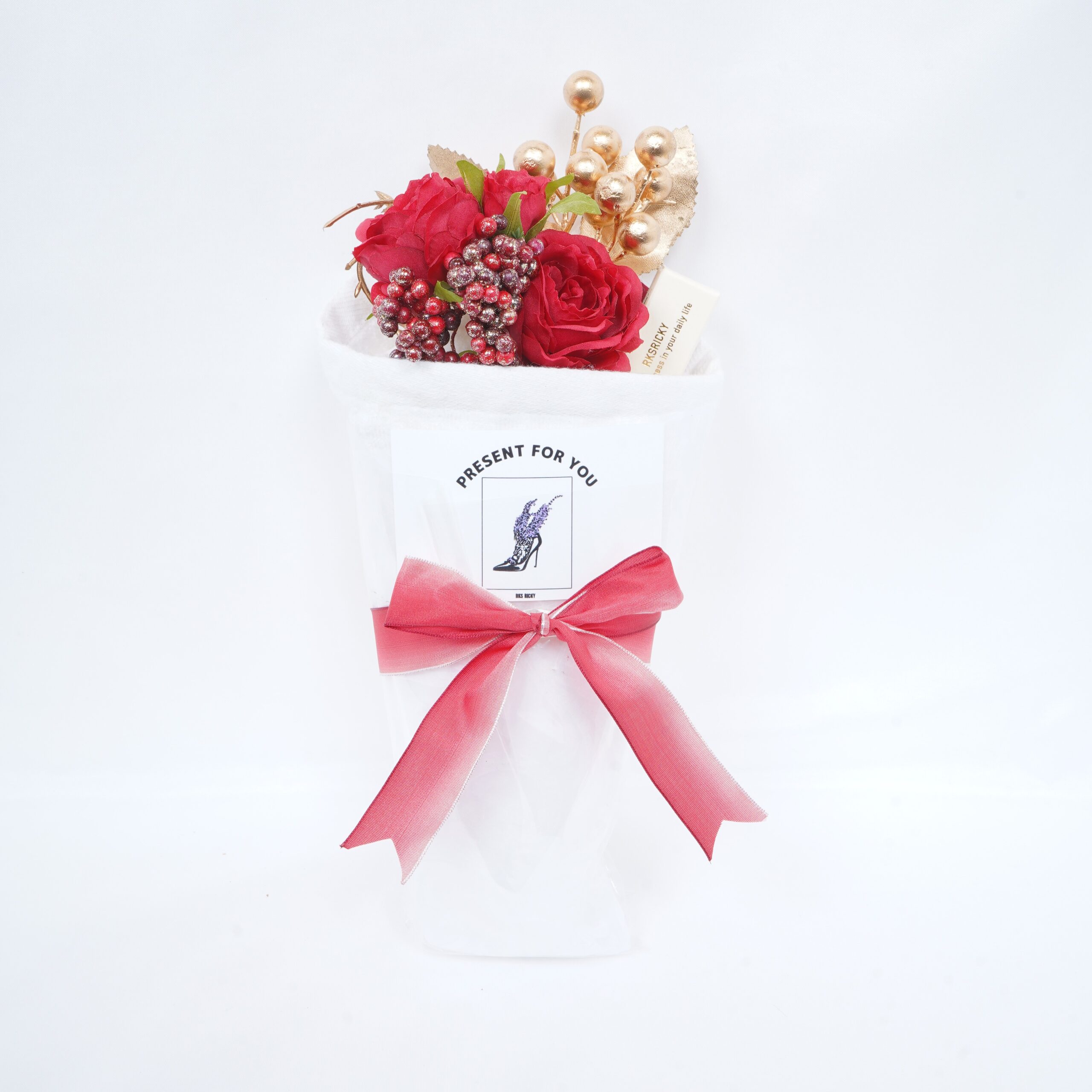 1月の誕生石「ガーネット」のカラーを用いて、新年らしく華やかなブーケを作成しました。