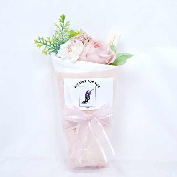 今作の「RKS レオパードタオルブーケVol.34」は、4月の誕生石”モルガナイト”のカラーを用いて製作しました。 春にピッタリな淡いピンク色で、お誕生日プレゼントや、ご入学祝いにも最適なブーケとなっております。