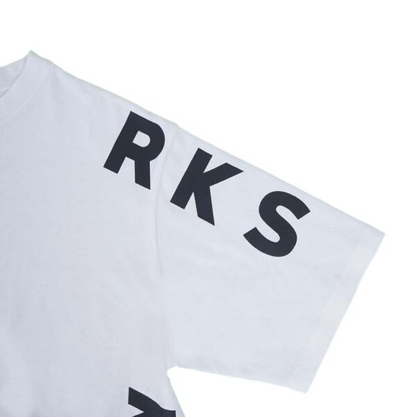 生地は綿100%となっております。 デザインは左肩から左わき下にかけ大きくRKSRICKYがプリントされております。 ユニセックスとして着用できます。